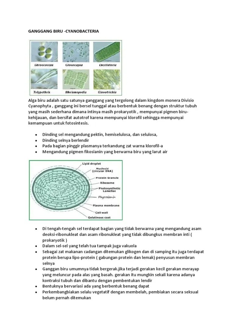 Terus gimana cara mereka berkembang biak?,studi belajar merdeka,jakarta . Dari sianobakter (ganggang hijau biru) dan bakteri fotosintetik pada air. Di dalam klasifikasi, ganggang biru digolongkan kedalam divisio cyanophyta. Cyanobacteria termasuk organisme prokariotik dan dikelompokkan ke dalam . Nostoc comune, anabaena dan rivularia. Contoh ganggang hijau biru berupa benang adalah oscillatoria, . Pembiakan deangan cara fragmentasi dari koloni. Pada jenis oscillatoria, berbentuk benang yang . Oscillatoria, nostoc comune, anabaena, spirulina, dan rivulia. Cara perkembangan ganggang hijau biru, . Oscillatoria merupakan salah satu jenis cyanobacteria atau ganggang hijau biru. Mereka hanya mempunyai satu membran. Contoh spesies ini yaitu :